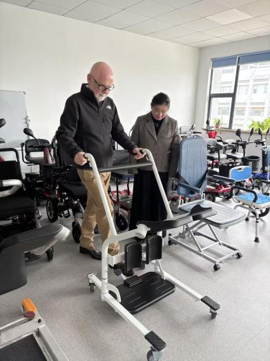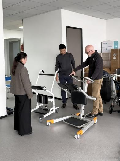Vergezeld door onze relevante opdrachtgevers besprak de heer James twee modellen van multifunctionele patiëntenverplaatsingsliften, inspecteerde hij zorgvuldig monsterstructuren en voerde hij tests ter plaatse uit.